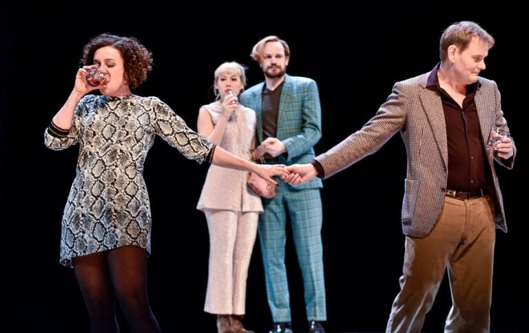 In this production at the Deutsches Schauspielhaus Hamburg, the two couples are played by Josefine Israel, Matti Krause, Maria Schrader, and Devid Striesow. And the chemistry between these four was undeniable! As the story unfolds, one drink turns to many, which leads to a string of not-so-great decisions. It’s hard to highlight a single actor that stole the show, as all four of them just lived and breathed their roles for the duration of the night.